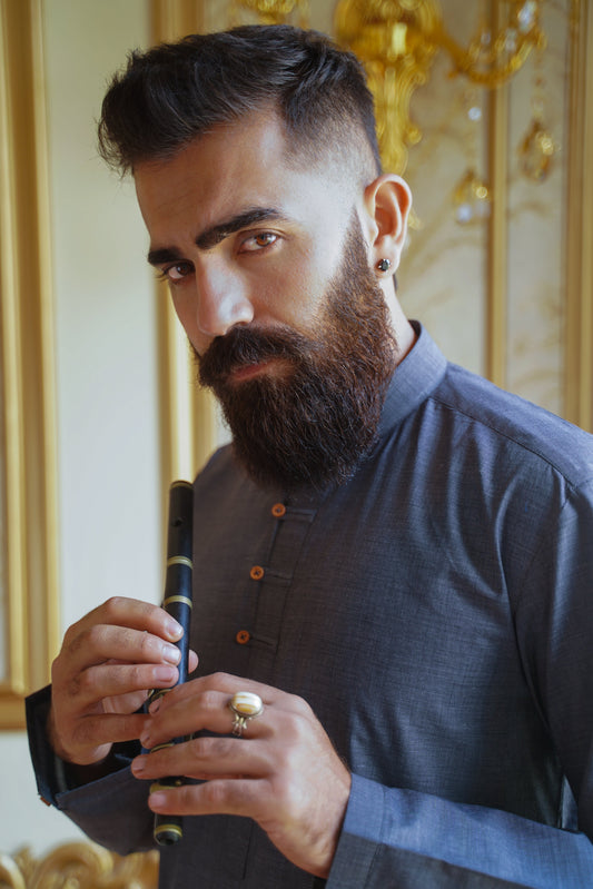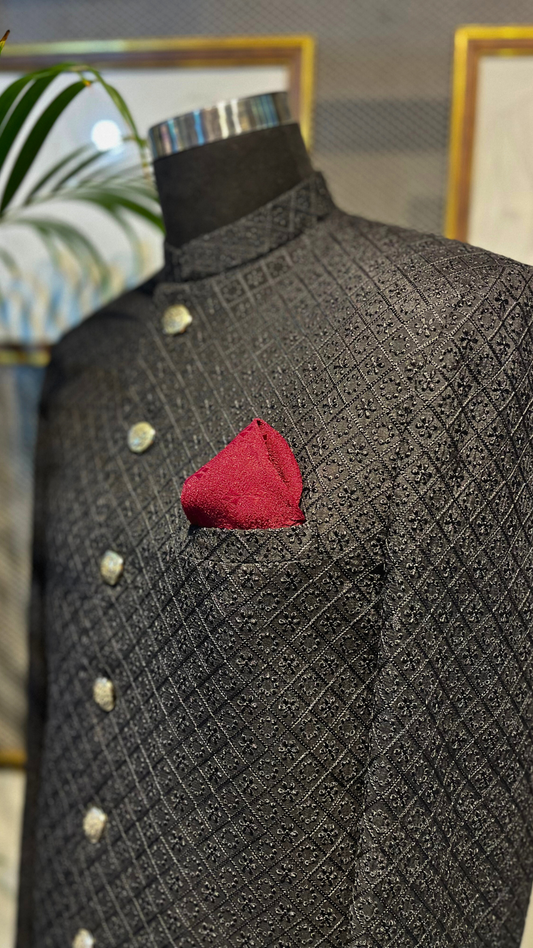 Midnight Charcoal Embroidered Sherwani