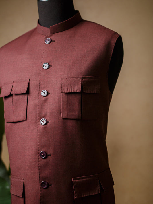 Maroon Kurta Trouser Set - Enigma Red