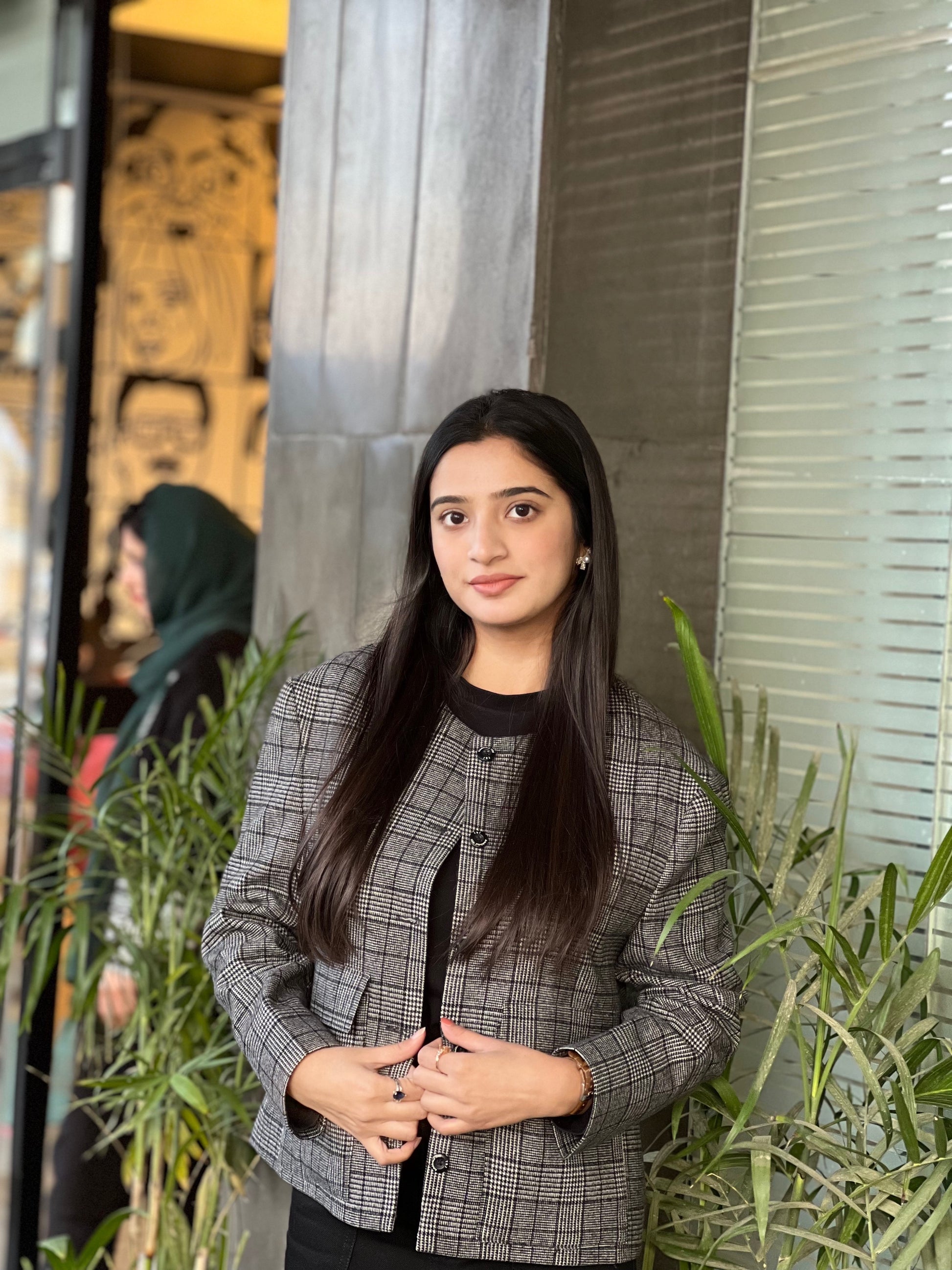 Make a bold style statement with the Boxy Check Blazer, designed for a modern, structured look.