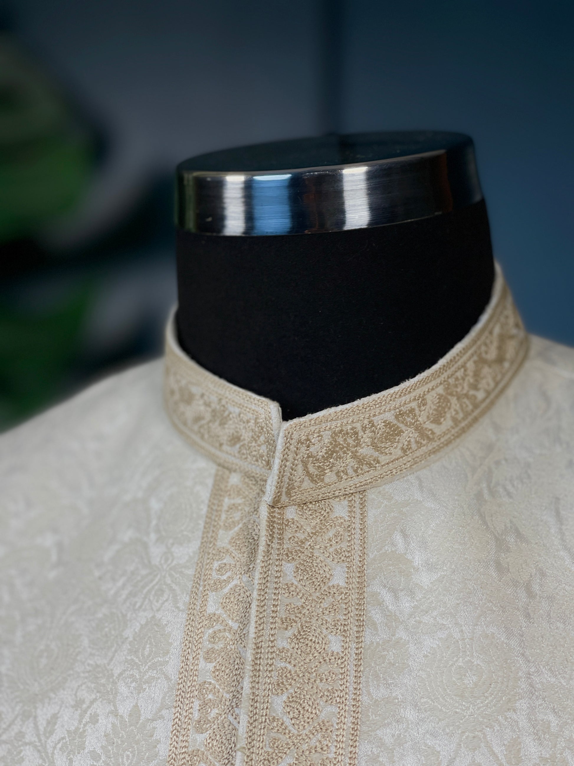 - Machine Embroidered work done on Ban, Cuffs, and Front Panels.